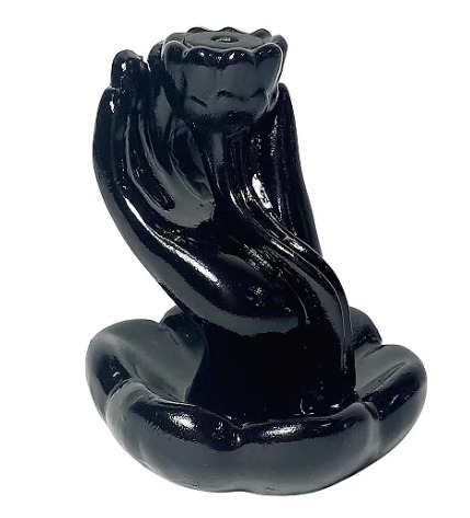 Incensário Cascata Mão Flor de Lótus em cerâmica.